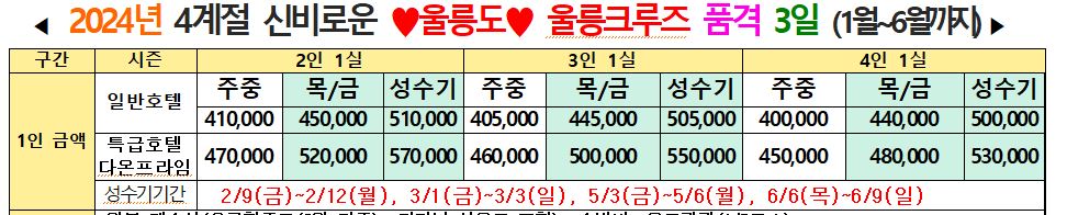 - [포항출발] 2024~!★ 울릉도 2박3일 울릉크루즈 ★밤 출발 뉴시다오펄호★ GPBS192N-IS